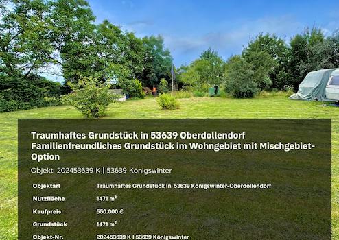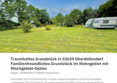 Dieses Grundstück in 53639 Königswinter-Oberdollendorf, ist gemäß dem örtlichen Bebauungsplan als Mischgebiet ausgewiesen. Es bietet daher die Möglichkeit, sowohl Wohn- als auch gewerbliche Nutzungen zu realisieren. Alle erforderlichen Versorgungsanschlüsse (Wasser, Strom, Gas) sind vorhanden und das Grundstück ist vollständig erschlossen.