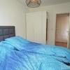 Wohnzimmer mit Couch, Tisch uind Essbereich und Zugang zum großne Balkon. Schlafzimmer mit Boxspringbett und Schrank. Modern gefliestes Badezimmer mit Dusche und Waschmaschine. Viel Stauraum bietet der große Flur. Großer Balkon mit Sitzgelegenheit.