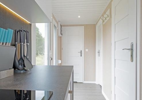 Dieses Tiny House umfasst ca. 40 m² umbauten Wohnraum + 8 m² überdachte Terasse mit 2 Schlafzimmern, Wohnzimmer, Küche mit Einbauküche und Duschbad und ist ein komplett ausgestattetes Fertighaus de Luxe, das mittels Sondertransport direkt an das Baugrundstück geliefert wird. Einfach abladen, aufstellen, anschließen und einziehen.