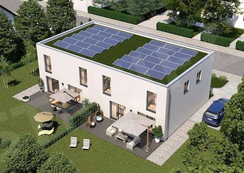 Der angegebene Preis bezieht sich auf eine Doppelhaushälfte inklusive PV-Anlage und der Vorbereitung für die Dachbegrünung.