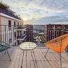 • großer Balkon Südseite mit Blick auf die Elbe und das Ostragehege