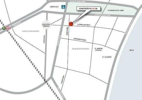 Sie wohnen nur 500 m entfernt von der Rheinpromenade mitten im Kunibertsviertel.