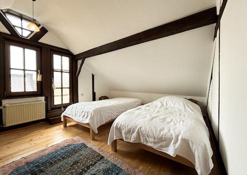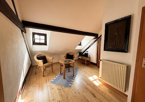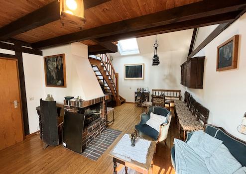 370 m². Das Obergeschoss bietet eine Wohnfläche von ca. 101 m² und verfügt über eine Küche, ein Esszimmer, ein Wohnzimmer mit einem Kamin für gemütliche Stunden, ein Schlafzimmer, ein Ankleidezimmer, ein Gästezimmer und zwei Badezimmer. Vom Wohnzimmer aus gelangen Sie über eine Holztreppe auf eine Empore im Dachgeschoss. Das Dachgeschoss ist ausgebaut mit einem Gästezimmer, einem Durchgangszimmer sowie einem Badezimmer, jedoch bezieht sich die Wohnflächenangabe lediglich auf das Obergeschoss. Insgesamt bietet Ihnen diese charmante Immobilie genügend Platz für Sie und Ihre Familie! Ihre Fahrzeuge finden ausreichend Platz in der großen Einfahrt oder in einer der 3 Garagen.