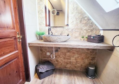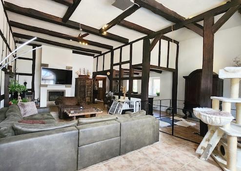 Mit sechs Schlafzimmern und drei Badezimmern bietet es mehr als ausreichend Platz für die ganze Familie. Außen haben wir einen schönen Bruchstein, innen ein bezauberndes Fachwerk!
