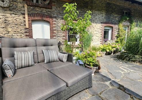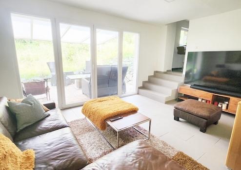 Der gemütliche Kamin sorgt für behagliche Stunden im Winter, während die großzügige Terrasse zum Entspannen und Verweilen im Freien einlädt.