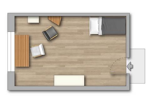 Zimmer - voll möbliert mit Bett (inkl. Matratze), Schreibtisch, Stuhl, Regal, Schrank, inkl. Internet, Heizung, Strom, Wasser u. Antennenanschluss;