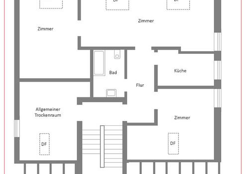 Die Dachgeschoss-Wohnung befindet sich alleine in der zweiten und obersten Etage eines gepflegten Mehrfamilienhauses mit nur fünf Parteien.