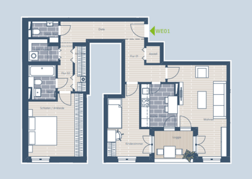 Variantenreiche Grundrisse mit durchdachten Raumaufteilungen ermöglichen eine auf Ihre Bedürfnisse zugeschnittene Flächengestaltung. Gleichermaßen erhalten Singles, junge Paare, Best Ager, Lebensgemeinschaften oder Familien mit Kindern allumfassende Entfaltungsmöglichkeiten und einen vielseitig nutzbaren Wohnraum, der das Zusammenleben bereichert.