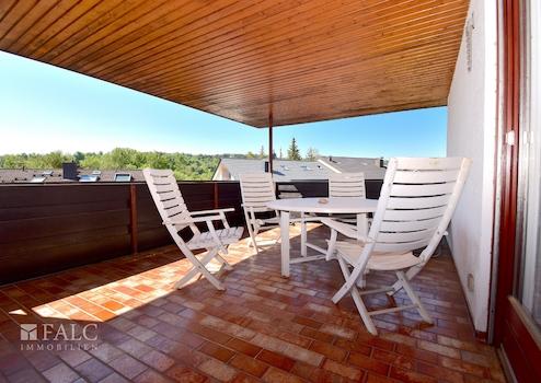 Ein Highlight dieser Immobilie ist der großzügige Balkon und ein Garten mit Terrasse, die Ihnen zusätzlichen Raum zum Entspannen und Erholen bietet. Hier genießen Sie die Möglichkeit, frische Luft und Sonnenstrahlen direkt von Ihrem Zuhause aus zu erleben.