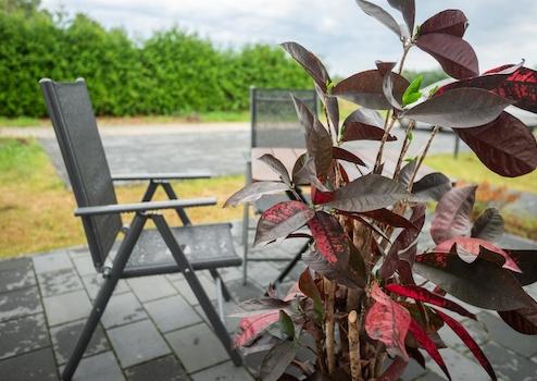 Der Haupteingang befindet sich seitlich. Der hintere Garten ist eingezäunt und momentan mit Rasen bepflanzt, so dass der gesamte Garten sehr pflegeleicht ist.
