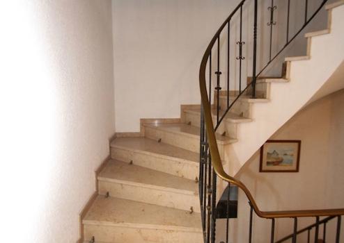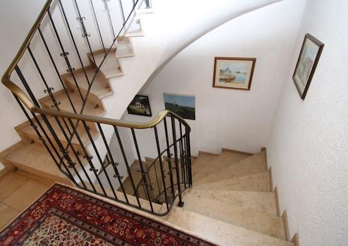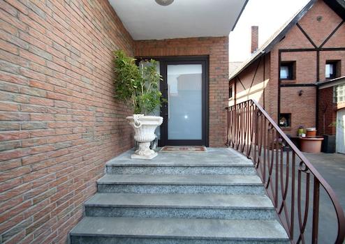 Das massive Haus erstreckt sich über vier Etagen und umfasst neun Zimmer, darunter sechs Schlafzimmer und zwei Badezimmer, ideal für eine große Familie oder zwei separate Haushalte. Die Ausstattungsqualität ist solide, mit einem zusätzlichen Gäste-WC.