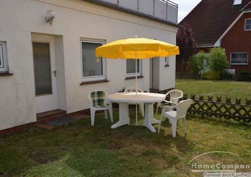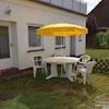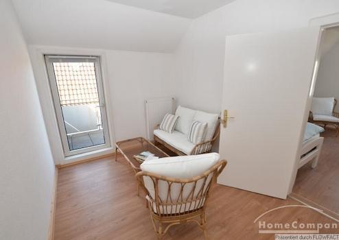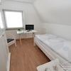 Die Wohnung ist Teil einer Doppelhaushälfte. Die Wohnung ist so geschnitten, dass sich zwei separate Schlafzimmer im Erdgeschoß befinden sowie eines der Bäder und die Küche. In der Küche befindet sich ein Essbereich und die Küche ist vollausgestattet mit Kühlschrank, Herd und Backofen sowie einer Spülmaschine. Im Obergeschoß befinden sich zwei weitere Schlafzimmer und das zweite Bad, welches mit einer Badewanne versehen ist. Es gibt auch einen Gemeinschaftsraum mit einer Couch und einen Balkon. Über die Terrasse im Erdgeschoß gelangt man in das Nachbarhaus, dort befindet sich die Waschmaschine für beide Hausteile. Parkmöglichkeiten gibt es direkt vor dem Haus.