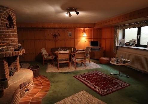 ausgebauter Partykeller mit offenem Kamin, Gästezimmer, Hobbyraum, Waschkeller, Vorratskeller, Abstellraum, WC, Heizkeller, große Diele/Treppenhaus - bis auf Vorrats- und Heizkeller beheizt