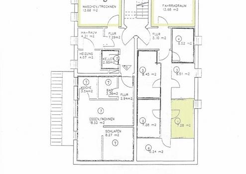 Es gibt jeweils einen gemeinschatlich genutzten Fahrradraum und Waschraum.