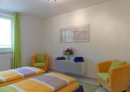### Please note the availability date! Bitte das Verfügbarkeitsdatum beachten! ### möblierte Wohnung in KS-Harleshausen; ruhige grüne Nebenstraße; WLAN inklusive; großes Wohnzimmer mit XL-Wohnlandschaft, rundem ...