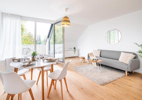 Diese Wohnung vereint modernes Design mit praktischen Annehmlichkeiten und ist perfekt für Paare, kleine Familien oder Berufstätige, die Wert auf eine zentrale Lage und hochwertige Ausstattung legen.