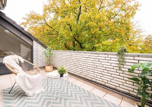 Balkon, Keller, Dachterrasse, Vollbad, Sauna, Einbauküche, Gäste-WC
