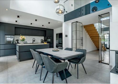 Im Obergeschoss ist die Galerie ein echtes Highlight, die das Gefühl vermittelt, sich in einem großen Wintergarten zu befinden. Von hier aus besteht ein direkter Zugang zur möglichen Dachterrasse, die zum Entspannen einlädt. Ergänzt wird das Raumangebot durch einen Elternschlafbereich mit angrenzender Ankleide, zwei Kinderzimmer und ein geräumiges Familienbad.