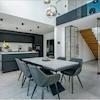 In der Variante L bietet der Wohn-, Ess- und Kochbereich bereits großzügige 64,7 m², was für ein komfortables Wohnen sorgt. Besonders beeindruckend ist der Bereich vor der Glasfront, der sich ideal als stilvoller Essplatz eignet. Der weitläufige Wohnbereich lässt sich zudem durch eine zusätzliche Wand unterteilen, um beispielsweise einen weiteren Raum für ein Gästezimmer, Homeoffice oder Schlafzimmer zu schaffen.