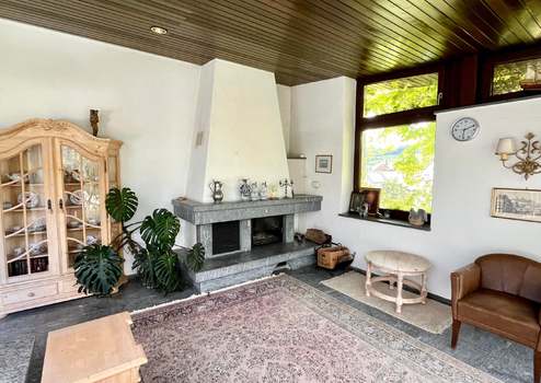 Über den einladenden Eingangsbereich mit viel Platz für Ihre Garderobe, folgt der großflächige und hell erleuchtete Wohn- und Essbereich mit einer Wohnfläche von über 50 m². An das Wohnzimmer wurde das Arbeitszimmer mit dem Blick in den herrlichen Garten gut eingefügt, so dass das Arbeiten von zuhause mehr Spaß macht. Das zum Esszimmer angrenzende und im Jahr 1986 gebaute Kaminzimmer wurde geschmackvoll im Haus integriert. Genießen Sie hier das Holzknistern und die wohlige Wärme an kalten Wintertagen. Ein Schlafzimmer mit Ankleide und angrenzendem Badezimmer, die Küche mit Speisekammer und Hauswirtschaftsraum schließen diese ausgedehnte Ebene ab.