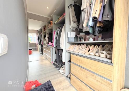 Im Erdgeschoss erwartet Sie ein großer, lichtdurchfluteter Wohn- und Essbereich, der durch die großen Fenster den ganzen Tag über Sonne genießt. Die hochwertige Einbauküche, die auf Wunsch gerne übernommen werden kann, bietet Ihnen ausreichend Platz zum Kochen und Genießen. Zusätzlich gibt es im Erdgeschoss zwei Schlafzimmer – eines davon mit einem angrenzenden Ankleidezimmer – sowie ein modernes Badezimmer mit Dusche, Badewanne und Dachfenster. Ein separates Gäste-WC rundet das Raumangebot im Erdgeschoss ab.