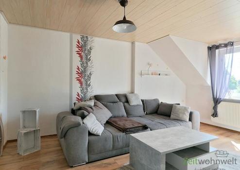 ### Please note the availability date! Bitte das Verfügbarkeitsdatum beachten! ### hübsches möbliertes Apartment im 3.Obergeschoss = Dachgeschoss, unweit zur Jenaer Innenstadt; helles Wohnzimmer mit Couch, Sesseln, ...
