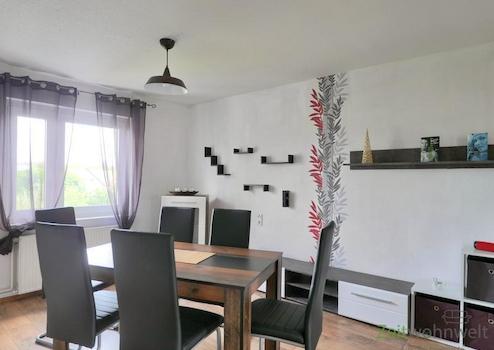 ### Please note the availability date! Bitte das Verfügbarkeitsdatum beachten! ### höbsche möblierte Wohnung in ruhiger Wohnlage in Waldkappel; WLAN; großes Wohnzimmer mit modernen rustikalen Möbeln, Sofa, Esstisch, ...