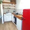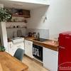 + Beim Eintreten stehst du in einer großzügigen Wohnküche mit gemütlichen Möbeln und neuen elektrischen Küchengeräten.