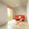 + Im Inneren wurde auf Anstriche und Verkleidungen weitgehend verzichtet, der Baustoff Beton wird kombiniert mit natürlichen Materialien wie Holz oder Keramik.