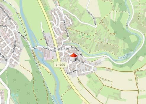 Ruchsen liegt einen Kilometer östlich von Möckmühl, an der Einmündung des Hergstbachs in die Jagst.