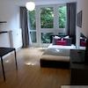 Dieses kleine, aber feine Apartment bietet mit seiner modernen und durchdachten Möblierung einen für 1-Zimmerwohnungen ungewöhnlichen Komfort. Im Erdgeschoss eines gepflegten Wohnhauses gelegen, beherbergt das geräumige Zimmer ein Doppelbett, einen Kleiderschrank, einen Ess-/Arbeitstisch mit 2 Stühlen, sowie eine ansprechende Pantry-Küche.