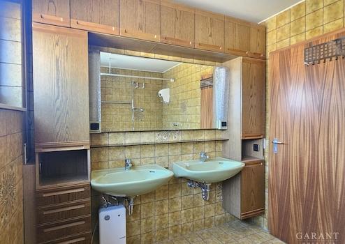 - Badezimmer mit Badewanne und zwei Waschbecken