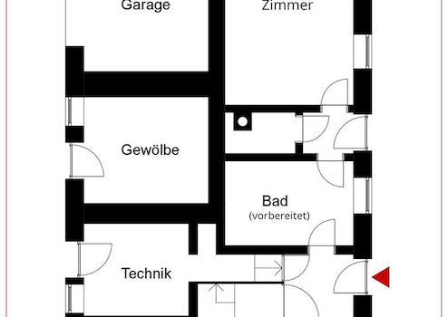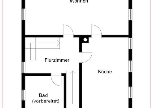 Im EG war eine Einliegerwohnung geplant, der Einbau eines Badezimmers ist vorbereitet.