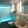 Badezimmer: Trotz kompakter Größe von 4,4 m² bietet das Badezimmer Luxus pur mit einer Lichtwand, einem freistehenden Waschtisch und einer bodenebenen Dusche.