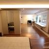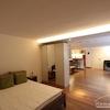Wohn-/Schlafbereich: Großzügiger, offener Raum mit hochwertigem Laminat und Einbauschrank für optimale Raumnutzung.