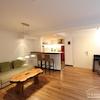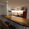 Wohnbereich: Der weitläufige, offene Wohnbereich ist durch eine Theke von der Küche abgetrennt und bietet direkten Zugang zur Terrasse.