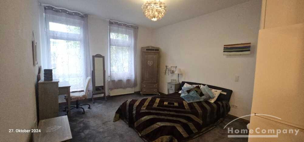 Große 3,5 Zi.-Altbauwhg., 2. OG, möbliert. Bad mit Wanne und Dusche, Balkon und kl. Garten zur gemeinschaftlichen Nutzung; Stellplatz vorhanden.