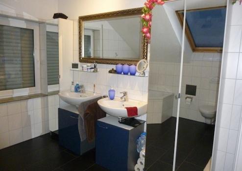 Bad mit Dusche und Wanne, 2 Waschbecken