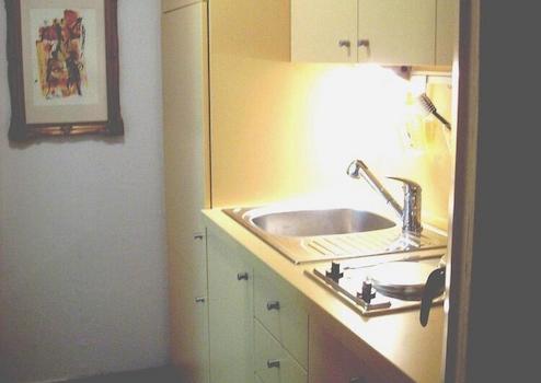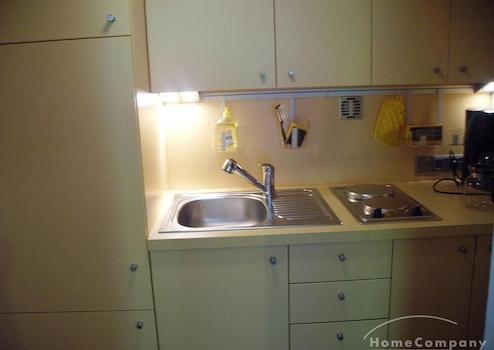 In der Pantryküche sind Waschmaschine, Mikrowelle, Wasserkocher, Kaffeemaschine und alltägliche Utensilien (Besteck/Geschirr etc.) vorhanden. Außerdem ist das Apartment mit einem Esstisch, einem Fernsehgerät sowie einem gemütlichen Einzelbett ausgestattet.