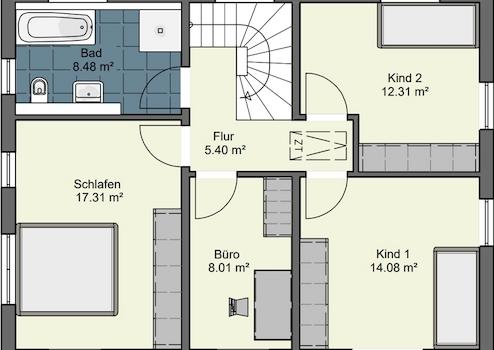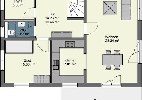 Das großzügige Einfamilienhaus verfügt über insgesamt 2 Etagen. Im Erdgeschoß befinden sich der Wohn- Essbereich, die Küche, ein Gästezimmer, ein Hauswirtschaftsraum, eine großzügige Diele und ein WC. Im Obergeschoß 3 Schlafzimmer, ein Büro und ein Bad. Die genaue Aufteilung ist noch genau bestimm- und variierbar. Das Haus ist mit wichtigen Details ausgestattet. Zu diesen gehören z.B.: