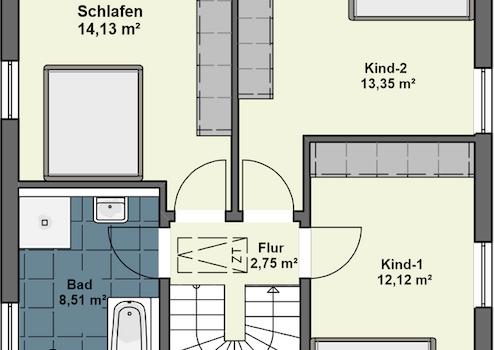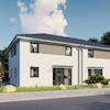 Es wird nach neuesten energetischen Standards für Sie gebaut. Die Wohnfläche beträgt ca. 110 m² inkl. der hälftig berechneten Terrasse. Das Haus wurde mit 4 Zimmern geplant, kann aber ganz nach Ihrem persönlichen Bedarf angepasst werden. Die dargestellten Grundrisse sind Beispiele seitens des Bauträgers und können noch individuell angepasst werden. Das Dachgeschoss ist nicht ausgebaut und dient als Abstellraum. Alle Fenster sind aus Kunststoff, 3-fach verglast und mit Rollläden ausgestattet. Beheizt wird das Haus mit einer Luft/Wasser-Wärmepumpe. Die farbliche Gestaltung der Fassade wird vom Käufer festgelegt. Zu dem Haus wurde eine Garage geplant, welche preislich noch dazukommt oder in Eigenleistung errichtet wird. Auch die Malerarbeiten und Bodenbeläge sind in diesem Angebot als Eigenleistung geplant. Im Kaufpreis sind bereits auch alle Baunebenkosten enthalten. Weitere Informationen übermitteln wir gern anhand der ausführlichen Bauleistungsbeschreibung.