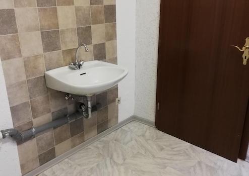 Der Boden im Flur der Einliegerwohnung ist mit Marmorplatten.