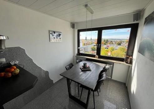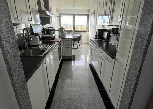 In der Wohnung angekommen befindet man sich in einem hellen Eingangsbereich mit genügend Platz für eine Garderobe mit Sideboard. Vom Flur kommt man in eine sehr moderne, hochwertige Einbauküche mit E-Geräten, sowie einer integrierten Wasch-Trockner-Kombination. Platz für eine gemütliche Essecke mit Ausblick über den Ort Tamm ist ebenfalls gegeben.
