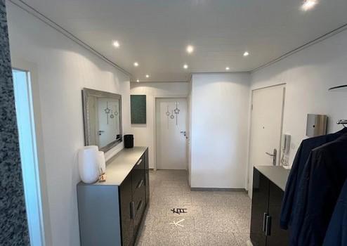 Die Wohnung besticht mit einer modernen, zeitlosen, weißen Holzdecke mit eingelassen Spots, die in einigen Räumen gedimmt werden können. Die Böden im Flur, Küche, WC und Bad sind aus Granit. Im Schlafzimmer, Kinderzimmer/Büro und Wohnzimmer wurde ein sehr hochwertiges Laminat verlegt.