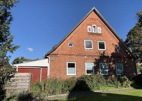 Bei der Immobilie handelt es sich um einen im ländlichen Stil geprägten Rotklinkerbau