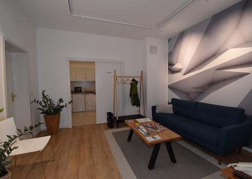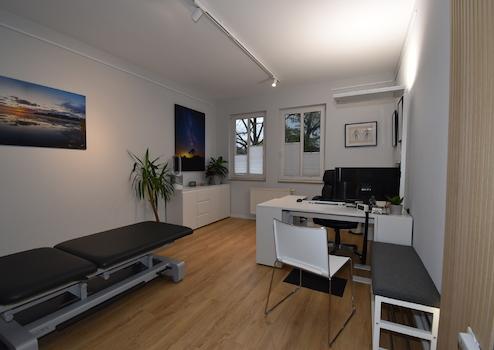 Wartebereich, Behandlungszimmer – Tapeziert, weiß
