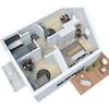 Dieses reizende Einfamilienhaus mit anderthalb Etagen beeindruckt durch sein behagliches und praktisches Design. Es umfasst vier Räume, eine offene Küche, ein Badezimmer, einen Technikraum und eine Diele und erfüllt auf kompakter Fläche die Anforderungen einer modernen Familie. Der Technikraum ist direkt neben der Küche platziert, wodurch er gleichzeitig als praktische Speisekammer fungiert und zusätzlichen Platz schafft.