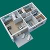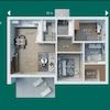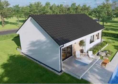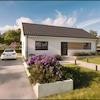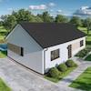 1-geschossiges Bungalow mit 3 Zimmern, Garderobe, offener Küche, Bad, Technikraum und Diele.