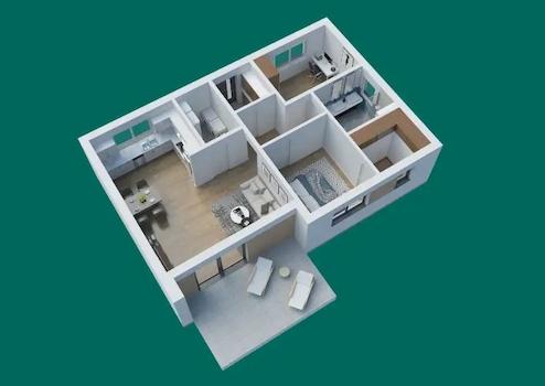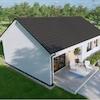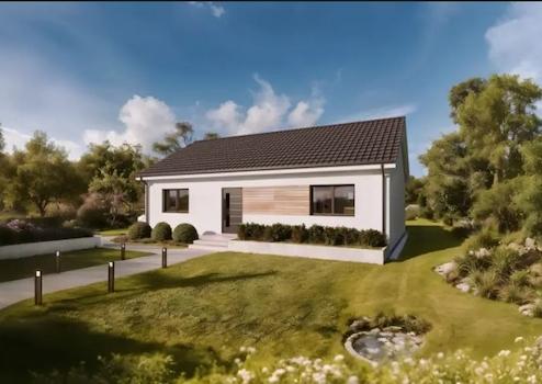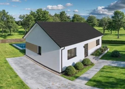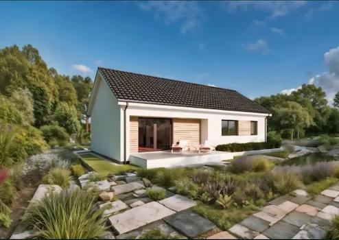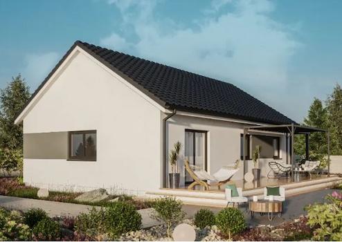 Dieser kleine und feine Bungalow glänzt durch seine durchdachte und praktische Raumaufteilung. Im Standard hat er ein Satteldach. Mit einer Nettogrundfläche von 79 m² bietet der Bungalow ausreichend Platz für ein behagliches Wohngefühl. Ideal für zwei Personen! Das geräumige Badezimmer sorgt für Komfort. Die offene Küche lädt zu geselligen Kochabenden ein, während die leicht nach innen versetzt geplante Terrasse einen ruhigen und geschützten Ort im Freien bietet.