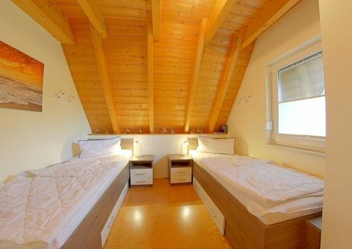 2 Schlafzimmer mit je 2 Betten, eins davon mit TV